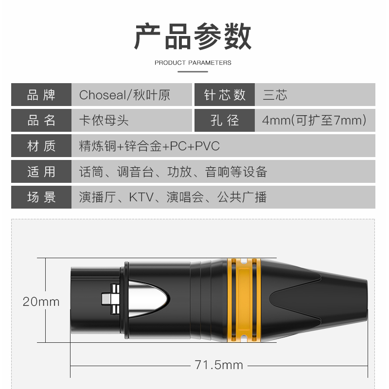 Akihabara QD2002 Canon head male female head three-core card dragon welding balance XLR XLR audio cable Professional microphone Microphone mixer connection audio amplifier speaker plug DIY accessories