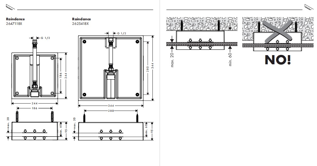German brand original Fly Rain Air Style Single Speed Overhead Shower Concealed base Kit 26471180