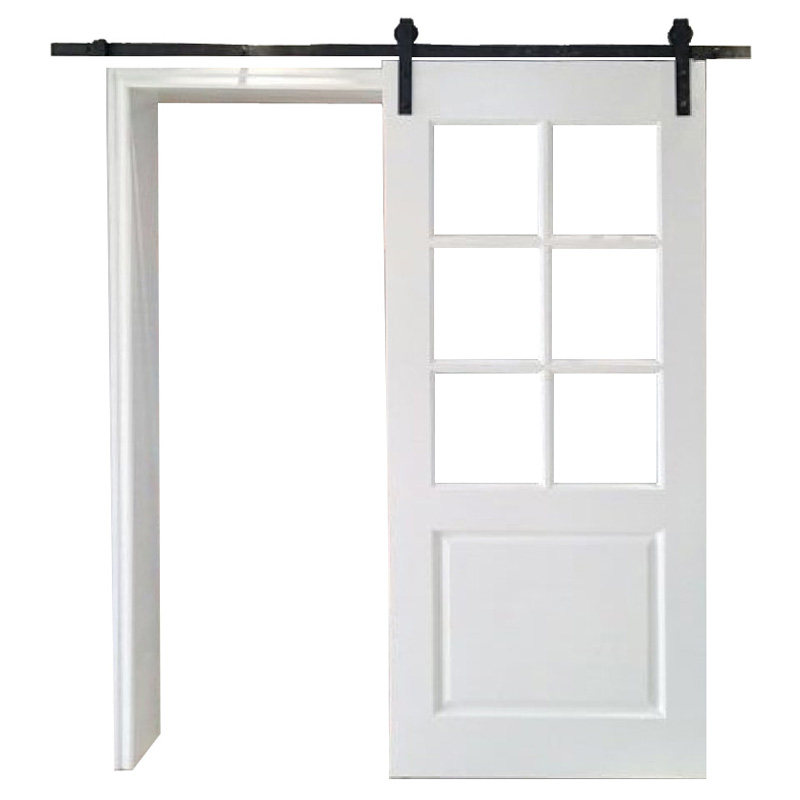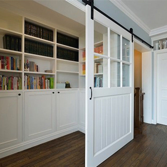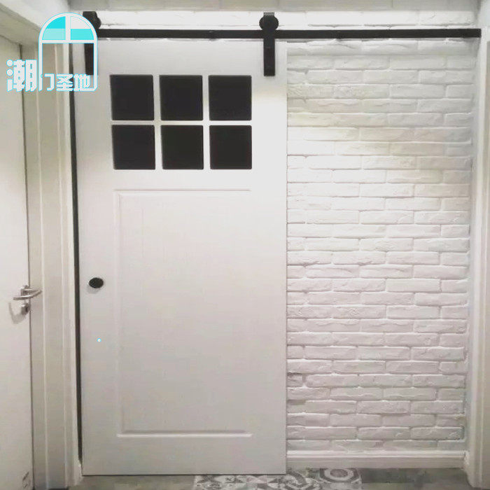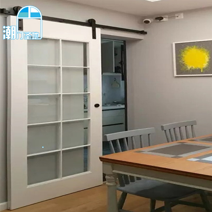Kitchen barn door light luxury hanging rail modern simple solid wood sliding door study partition glass bathroom door customization