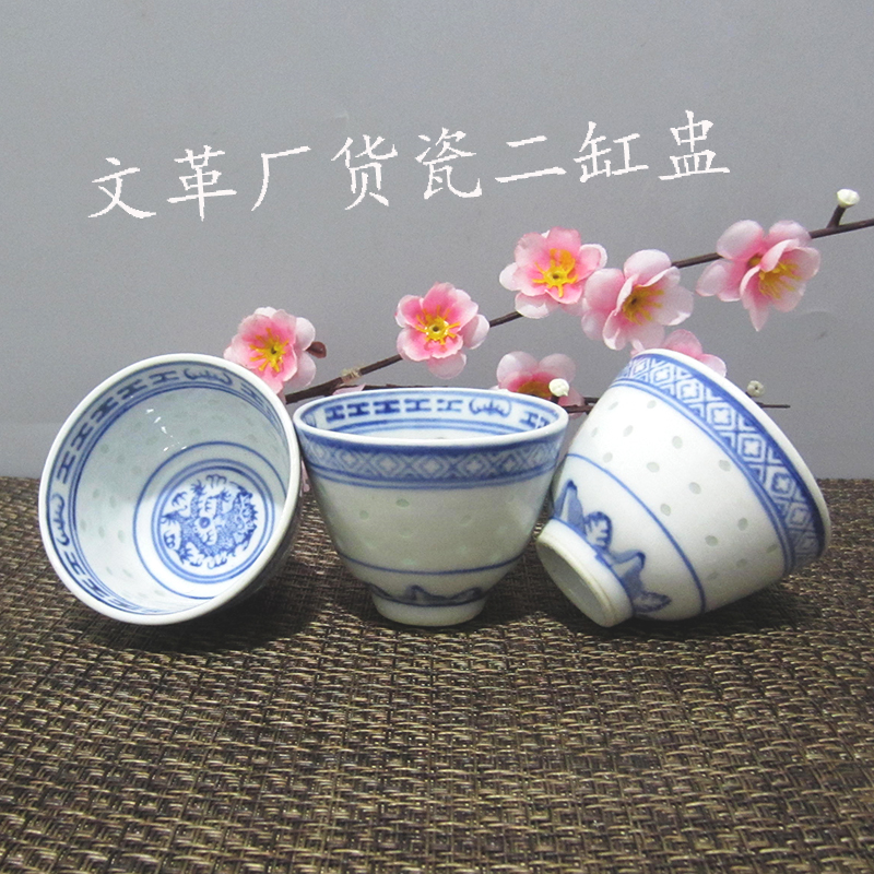 Jingdezhen Cultural Revolution Factory porcelain blue and white exquisite two-cylinder cup Dragon heart Flower Heart Pu'er tea cup Tea cup Old porcelain