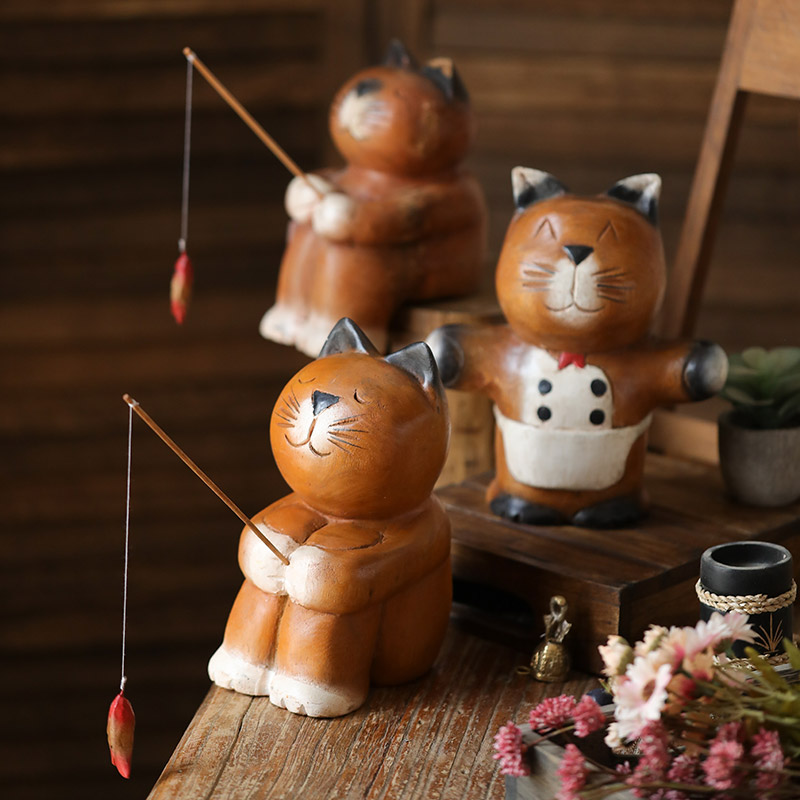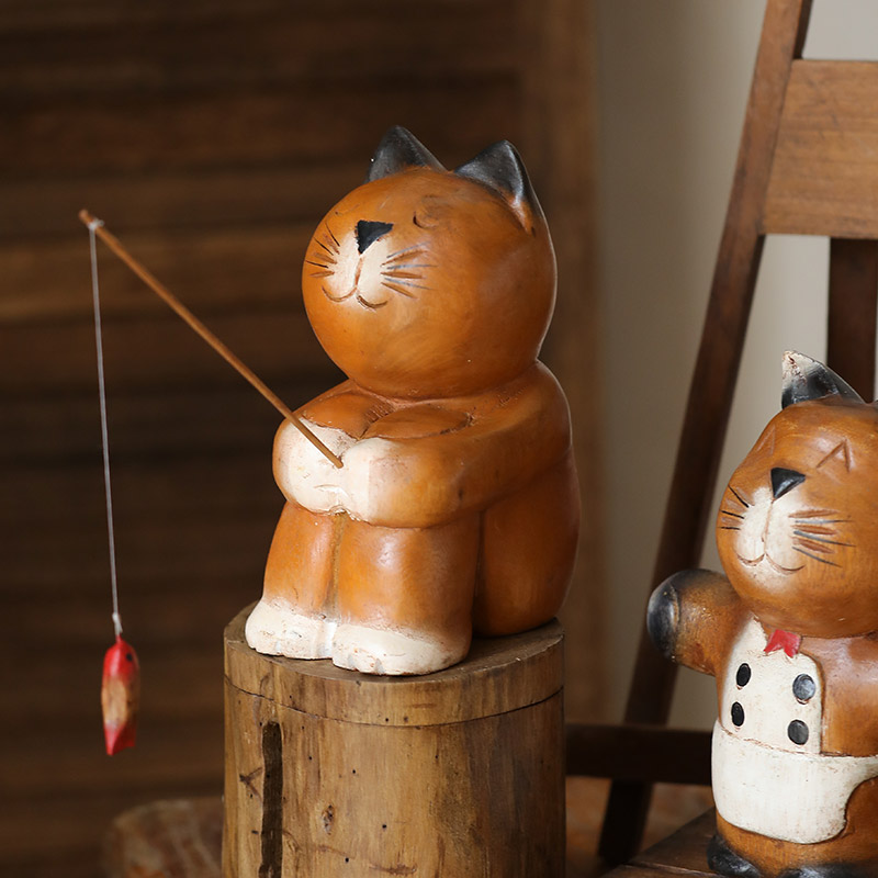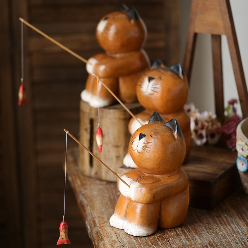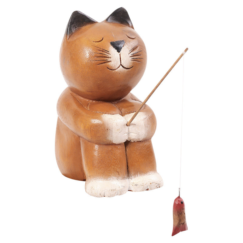 Iserie Thai Craft Gifts Swing Accessories Wood Carving Fishing Cat Swing Piece Southeast Asia Adornment Creative Wood Desktop Home Furnishing