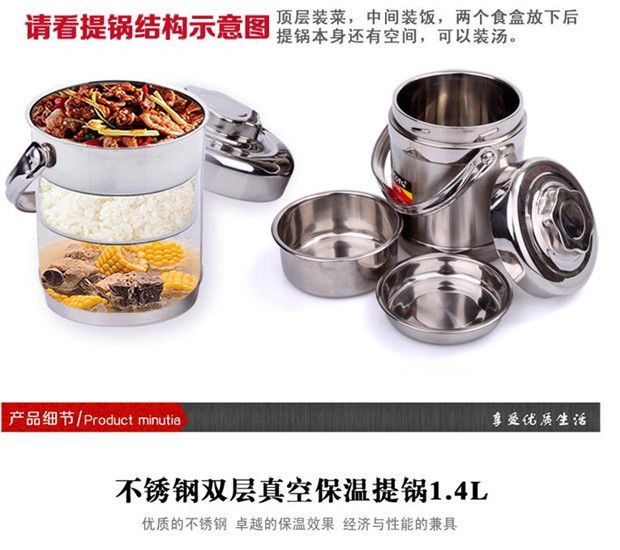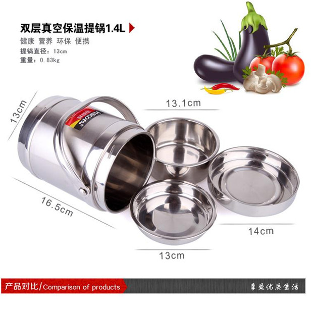 Heikete stainless steel lunch box metal bento box insulation bucket heat preservation pot 1 4-1 8l send chopsticks spoon fork