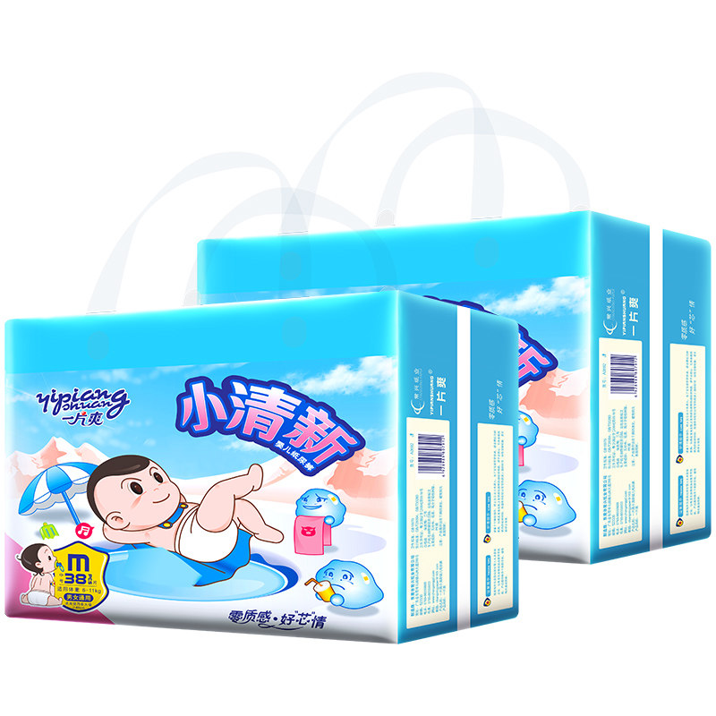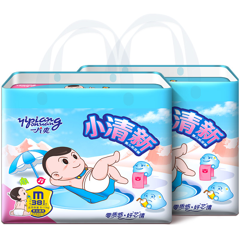A piece of cool small fresh and light cotton soft baby diapers M size 76 pieces baby male dry breathable diapers female