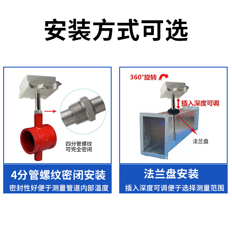Pipe duct temperature and humidity sensor transmitter 4-20ma output analog hygrometer display flange