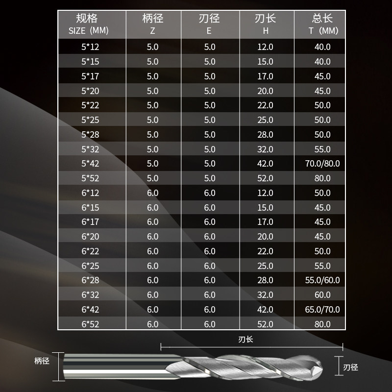 Other specifications to make contact customer service only made model note handle diameter * blade length * total length imported ball head milling cutter 6 * 12 * 50 total length imported ball head milling cutter 6 * 15 * 50 total length imports