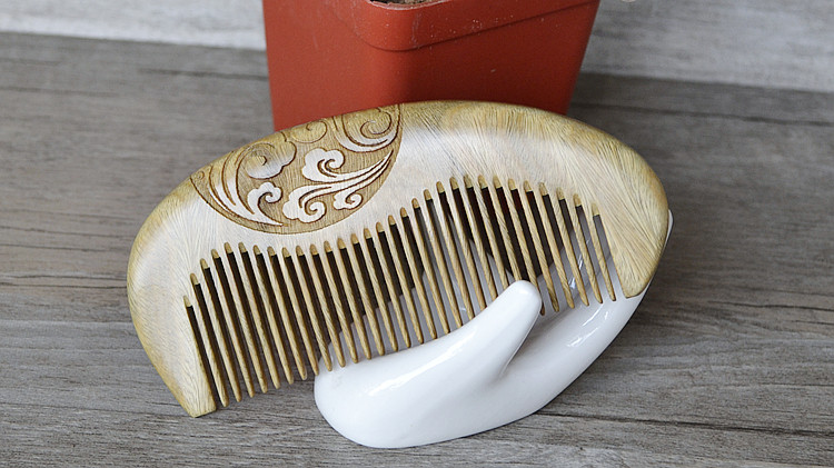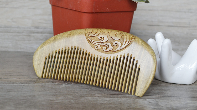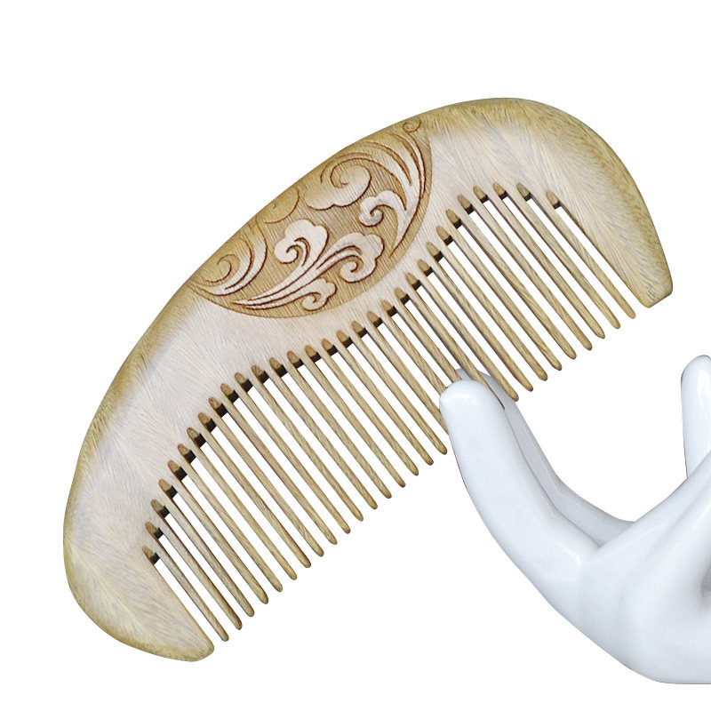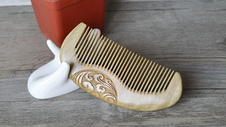 Yunuer whole material double-sided engraving flower green sandalwood comb head comb anti-static lettering for girlfriend gift