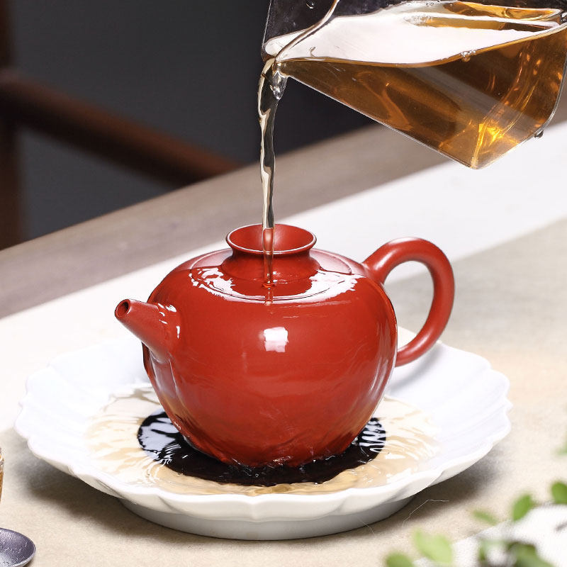 (brisk pottery) Yixing home Tibetan chicken blood large red gown Zhu mud pure full hand fishing weng purple sand pot Li Xiaolu 270cc