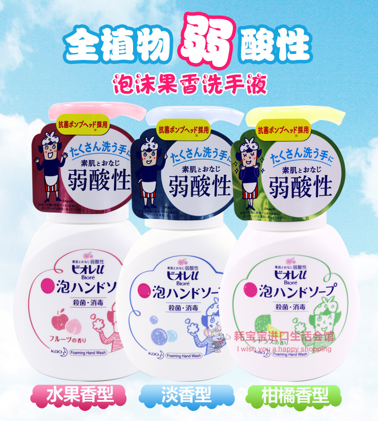 Japanese Kao Baby Children Adult Sterilization Foam Hand Cleanser 250ml Fruit Citrus Light Fragrance
