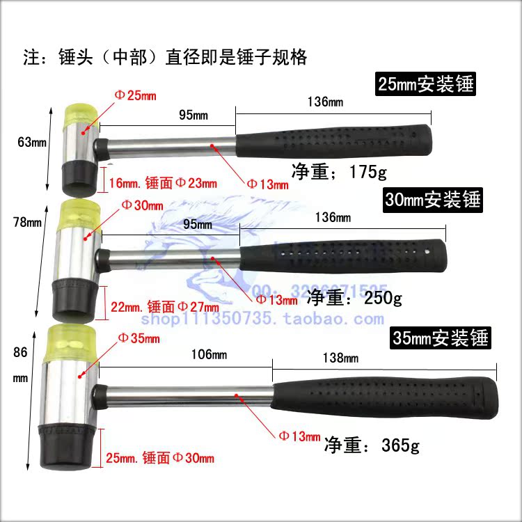 Installation hammer 35mm Installation hammer 25mm Installation hammer 30mm Installation hammer 40mm