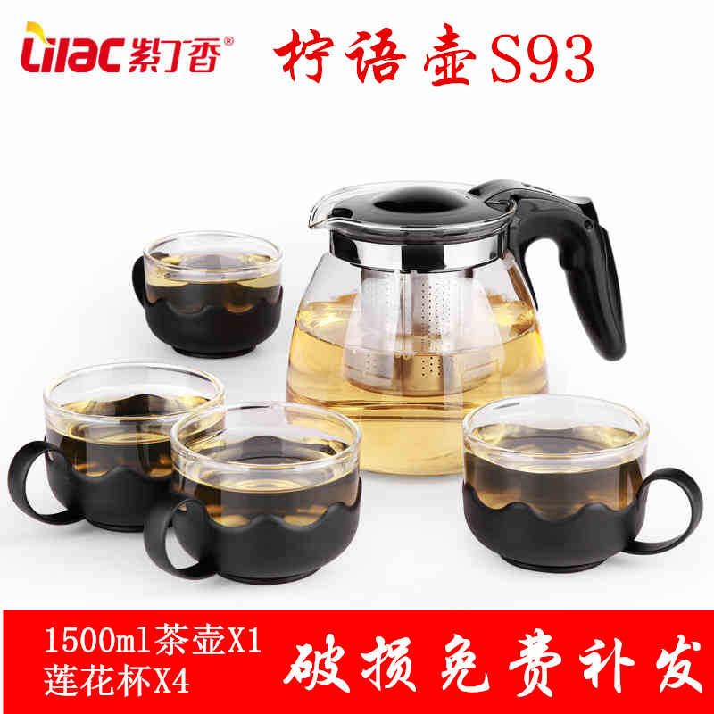Lilac Heat-resistant Glass Teapot Stainless steel Filter Teapot Flower Teapot Glass Tea Set Teapot