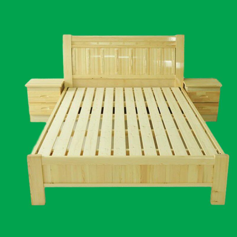 Natural solid wood bed modern minimalist rental home single double bed 1 2 m 1 5 m 1 8 m Direct sale