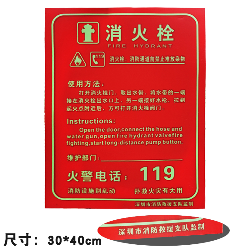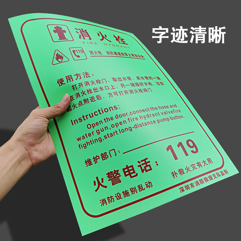 Shenzhen fire hydrant use method description Fire hydrant logo Fire mark sign sign sticker paper luminous