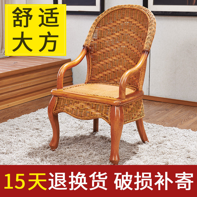Natural real rattan rectangular solid wood dining table and chair combination household modern minimalist dining chair 4 people 6 people rattan woven furniture