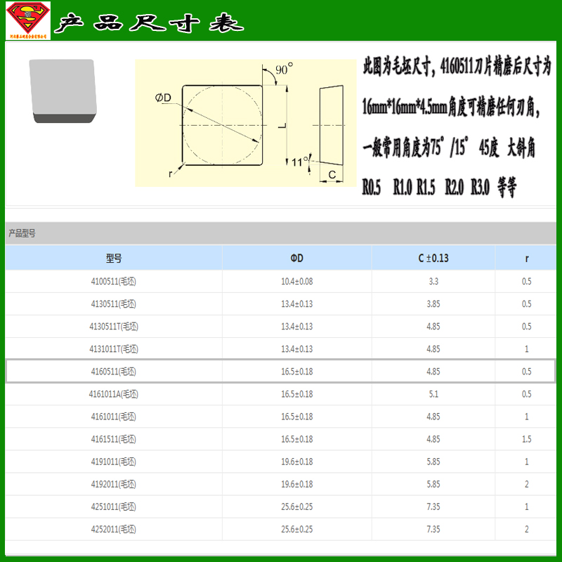 Square tungsten steel blade 4160511 carbide head 75 degree cutter Longmen milling cutter grain 4XH16R blade