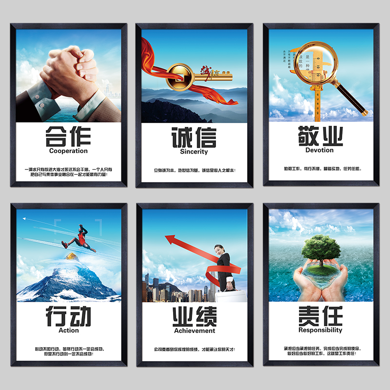 Teamwork Integrity innovation Punctuality Struggle Service gratitude Communication Action Responsibility Dedication goal Hard work Time practical challenge attitude Smile efficiency Performance outlook Execution
