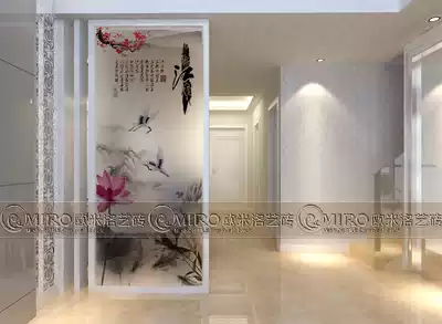 New art glass light talk ink painting wind screen partition sliding door carving process Jiangnan Lotus