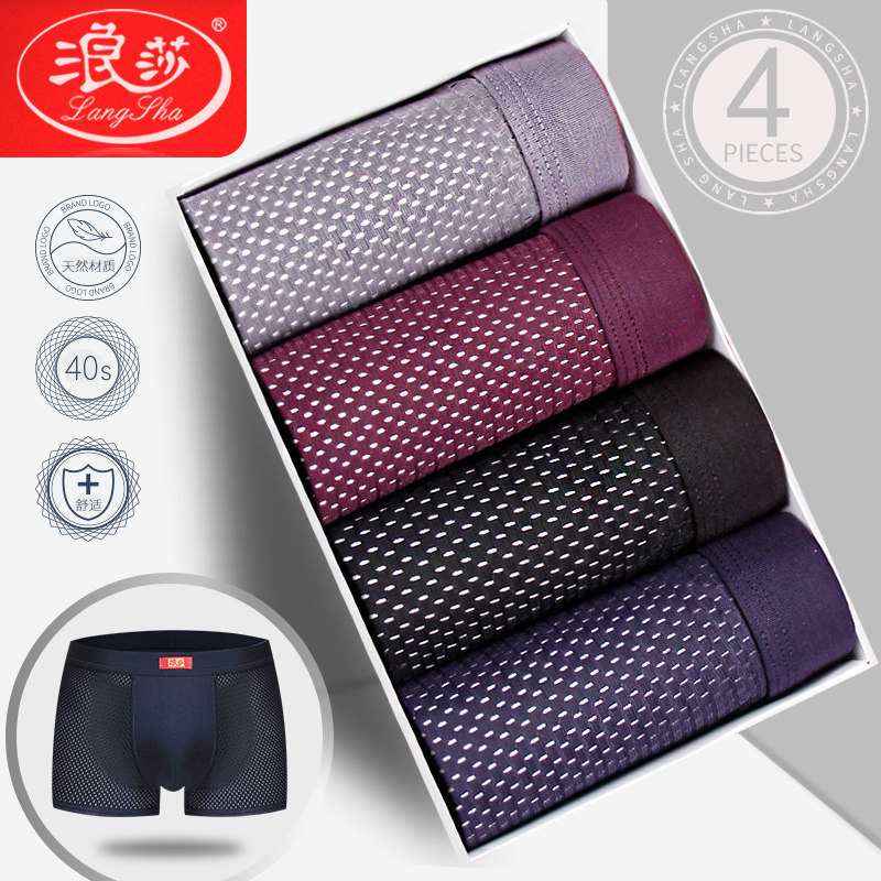 Langsha ice silk underwear men's summer thin breathable modal mesh boxer men's sports boxer shorts
