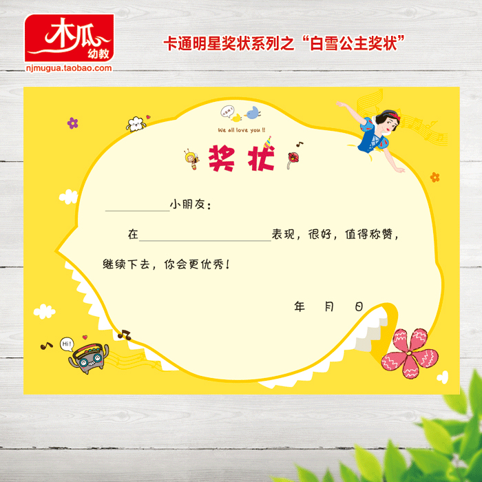 16k (A4)Pink KT cat has the word 16k(A4)Blue Superman has the word 16k(A4)Little Yellow man has the word 16k (A4)Snow White has the word blank cartoon star certificate
