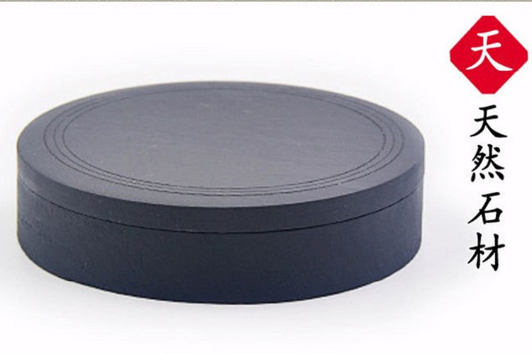 Students practice Mao pen words 4-inch simple thread with lid round original stone ink stone ink stone Calligraphy Country Painting Wenfang Supplies