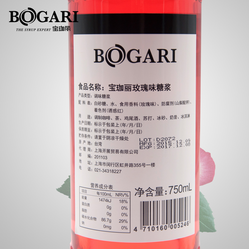 BOGARI Baojia Li Imported Syrup Rose flavor Fruit dew 750ml Modulated Ice Sands Buy 2 Bottles Send head