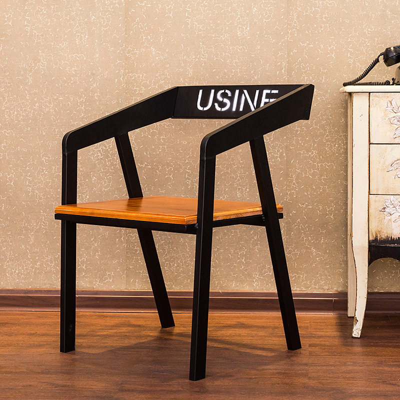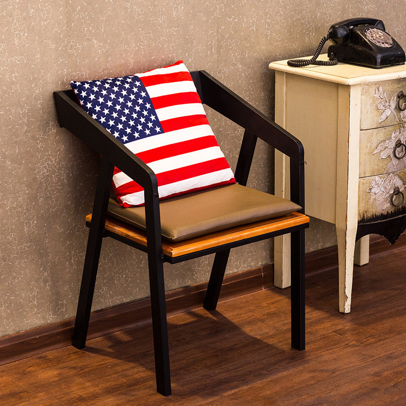 American dining chair Iron art solid wood dining table chair Ingenuity light luxury milk tea shop dining chair Cafe Industrial style theme dining room
