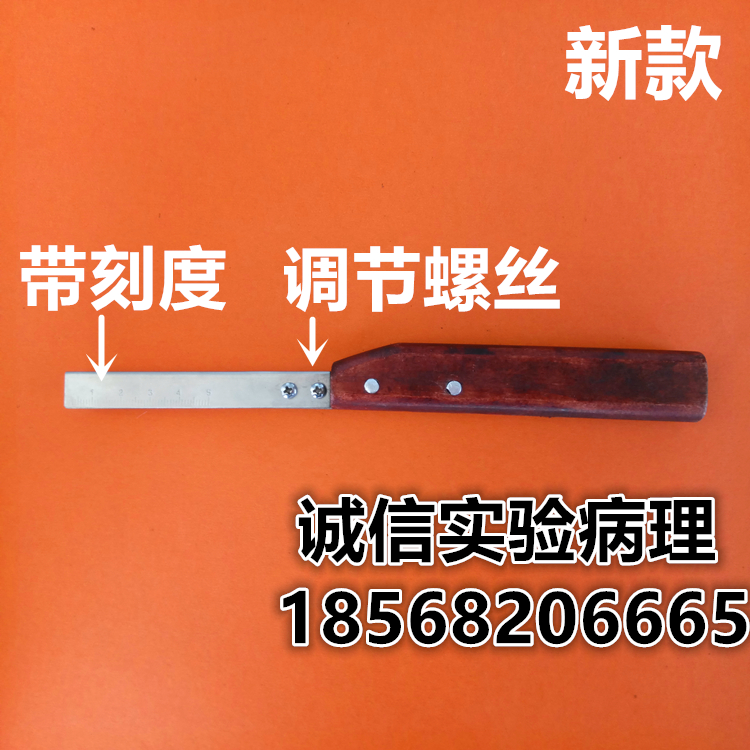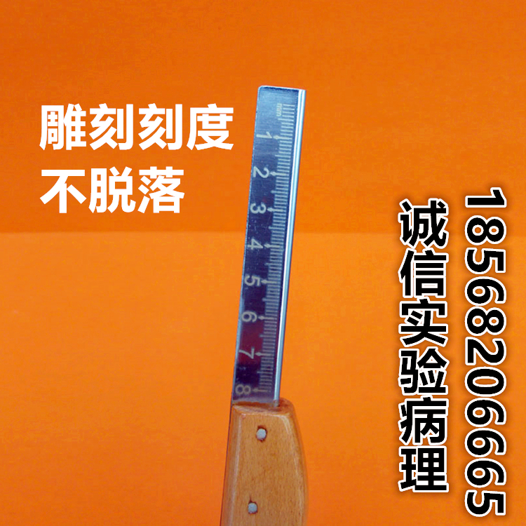 Pathology sampling shank with graduated material shank with matching leica blade 819 feather blade R35