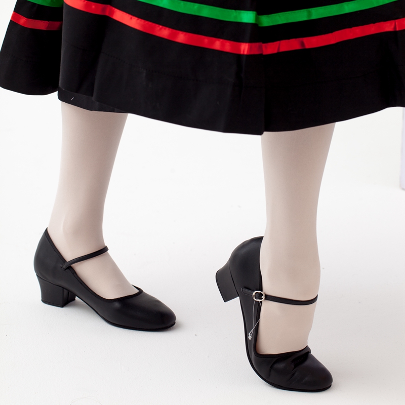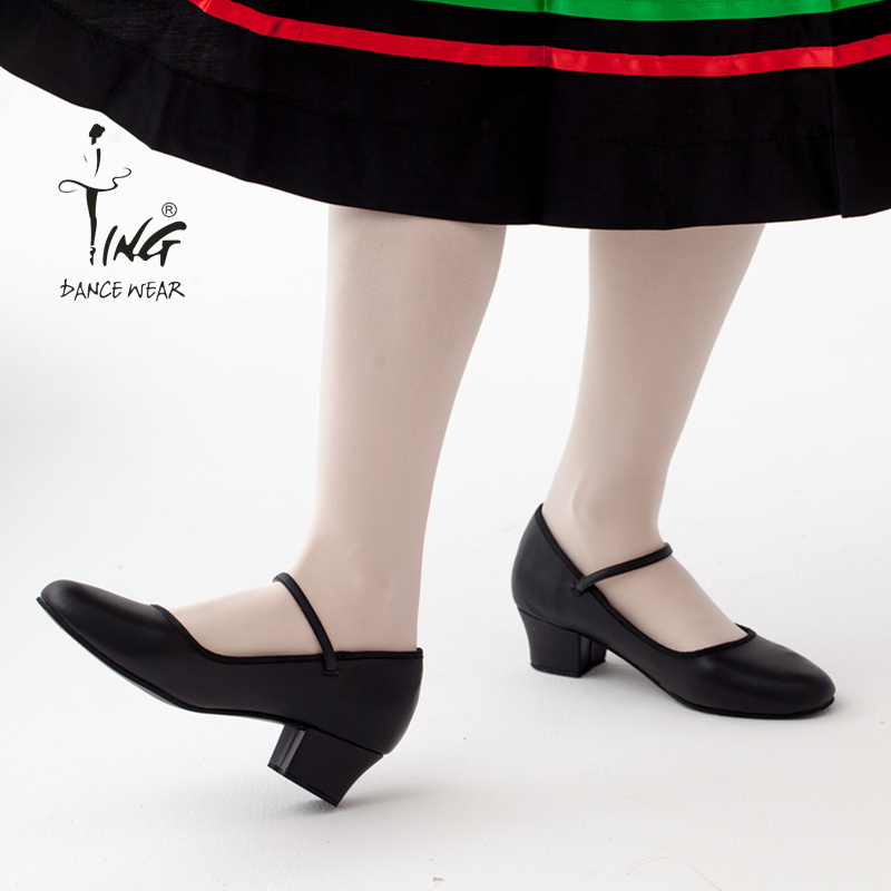 Chen Ting dance shoes leather character dance shoes ethnic folk dance shoes thick medium heel black dance shoes female adult