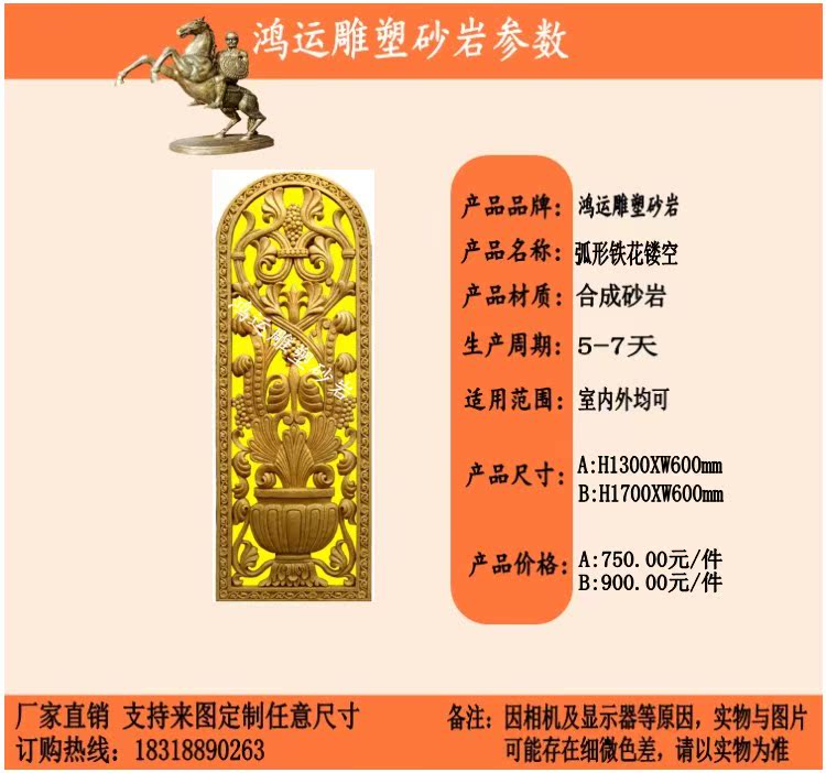 Sandstone relief sculpture European-style arched iron flower hollowed-out relief background wall hotel villa Home Furnishing Furnishing materials