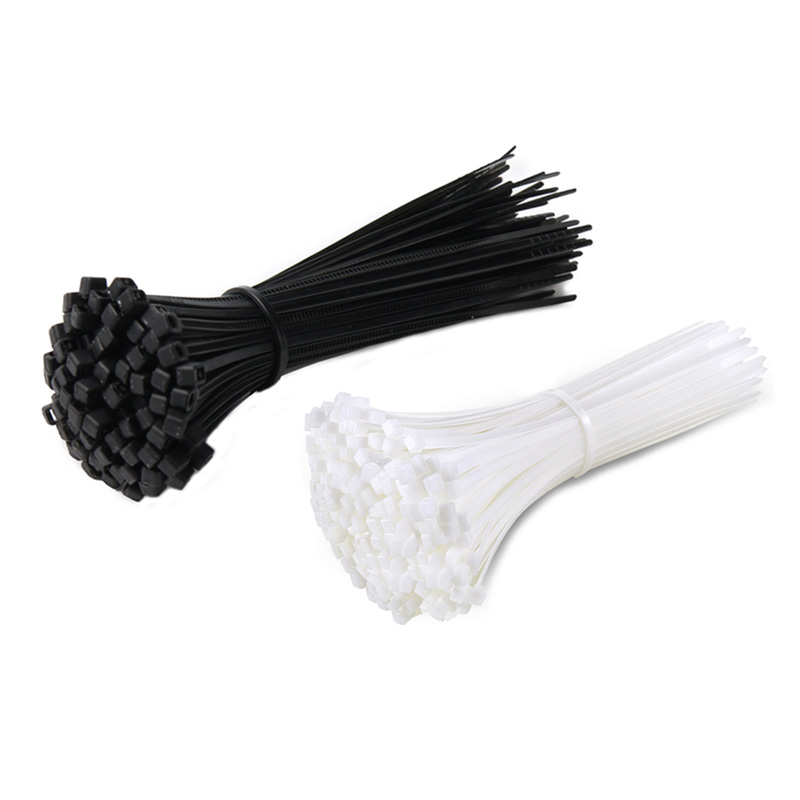 (100 pcs) cable ties nylon self-locking plastic buckle fixed strong belt strapping strap black and white rolling binding wire