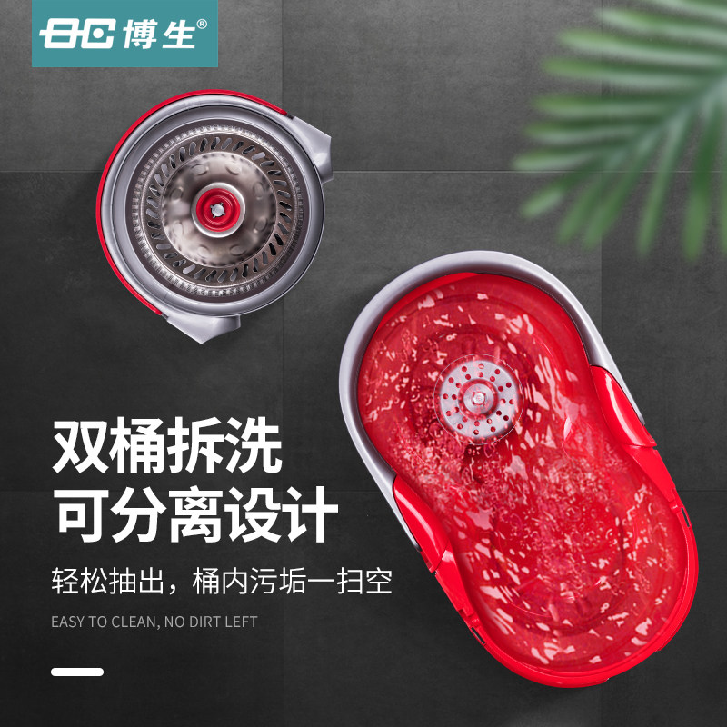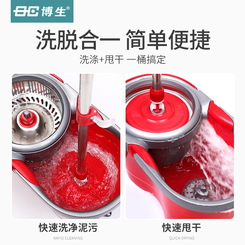 Bo Sheng stainless steel rotary mop bucket Double drive automatic mop bucket Household mop mop Stainless steel mop