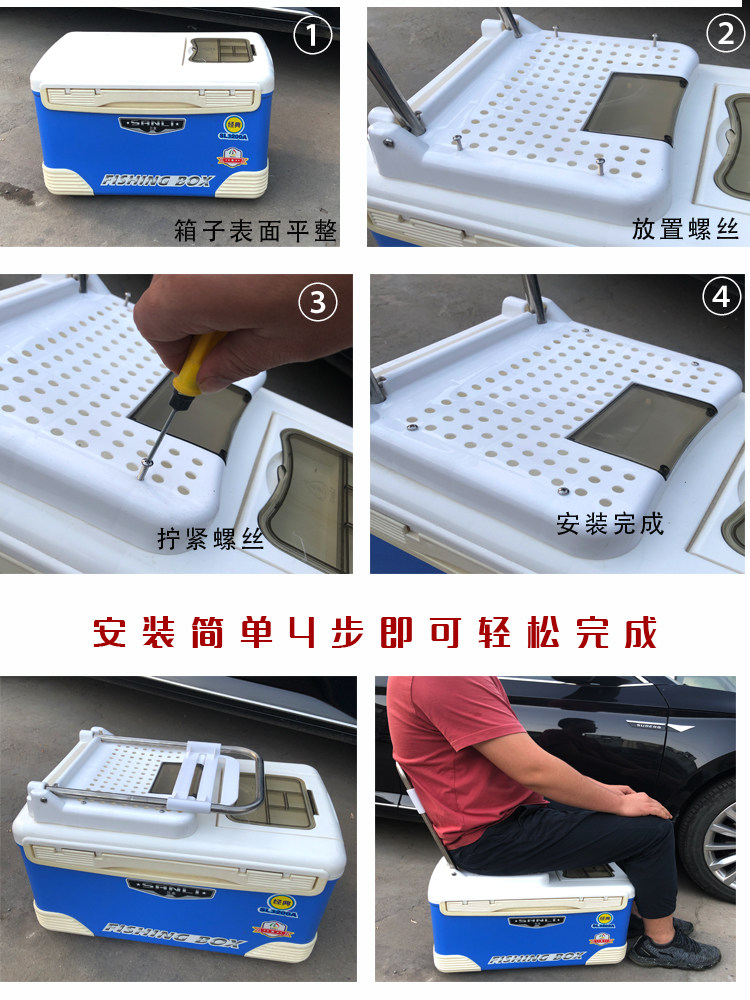 Bench plus blue cushion seat stool plus red cushion sitting stool plus black cushion fishing box sat stool plus ice pad Upgrade Fishing Box Sitting Stool Plus Ice Mat Fishing Box Sat stool Fishing Box Sitting on board Fishing Box Seat blue cushion