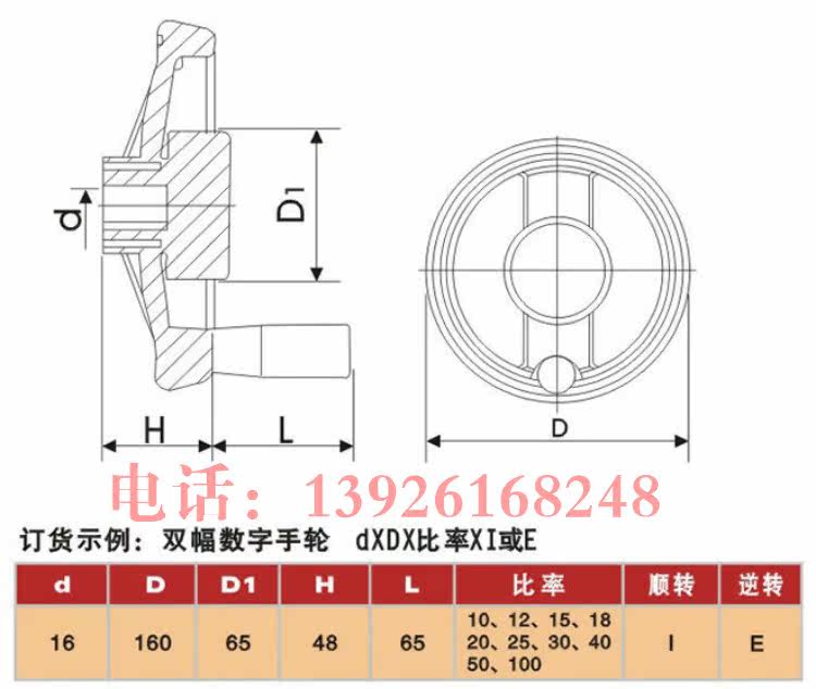 Plastic double-spoke dial-type handwheel fixed handle digital handwheel 16*160