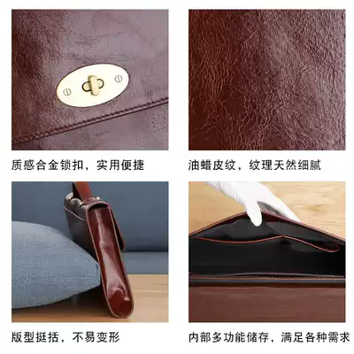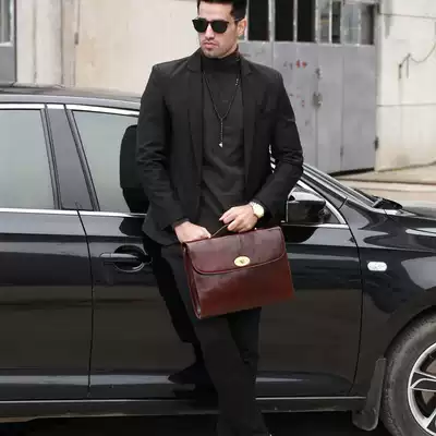 First layer cowhide men's handbag retro horizontal briefcase leather business bag simple envelope bag clamshell lock
