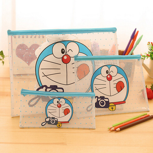 Stationery cute robot cat cartoon zipper bag Transparent file bag Pencil bag Jingle Cat bill clip