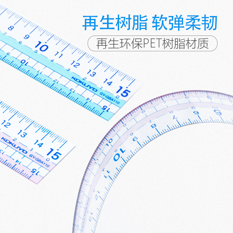 Japan KOKUYO Guoyu ruler set multi-functional transparent protractor plastic ruler 15cm triangle ruler measurement