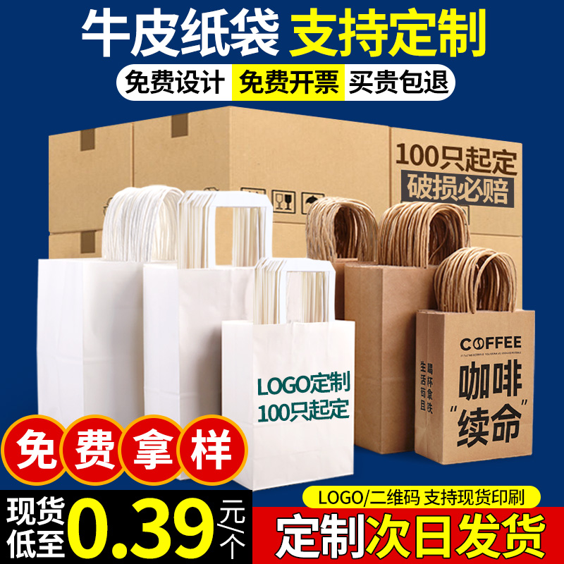 Kraft paper bag tote bag customized coffee milk tea delivery packaging bag commercial bakery clothing store bag customization