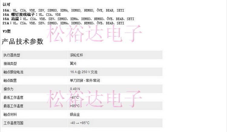 () D45X D459-V3RD Germany CHERRY micro switch 16A250V with long wheel