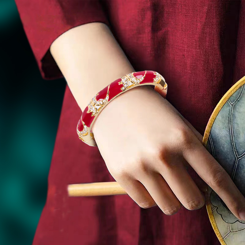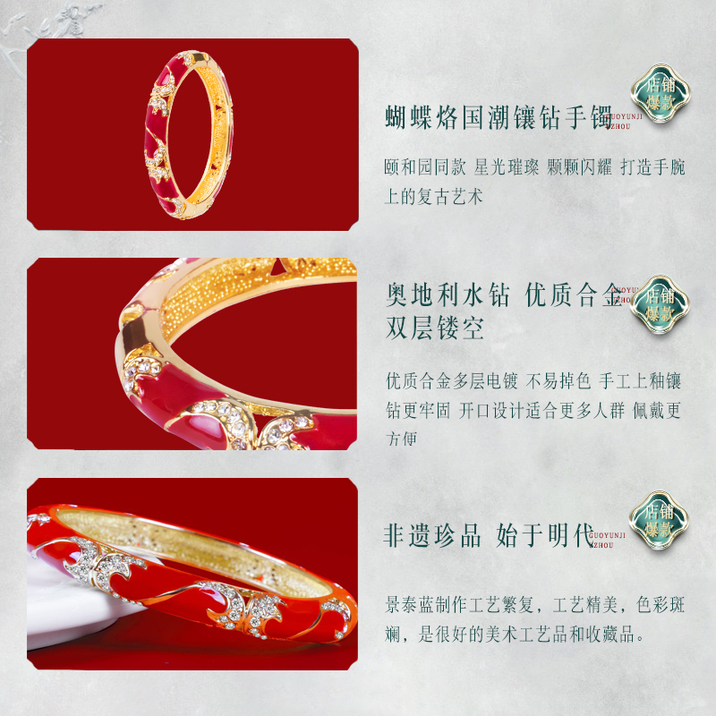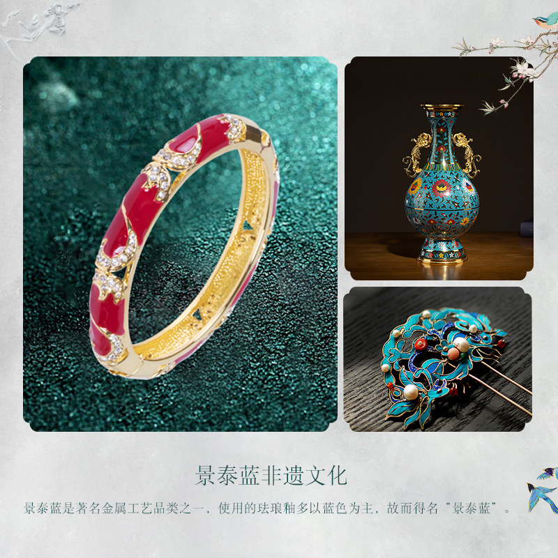 Guochao Beijing Jingtai Blue Bracelet Retro Pinch Enamel Bracelet Sub ornaments opening to send Mom Girlfriend Featured Gift-Taobao