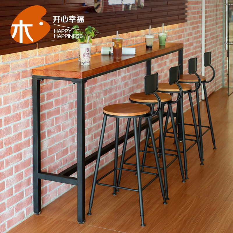 American Countryside Loft Iron Art Solid Wood Bar Cafe strip dining table and chairs bar floor window wall side table Xuanguan