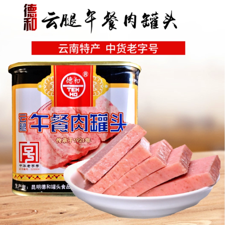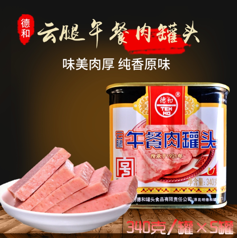 Yunnan specialty Kunming Dehe Xuanwei ham luncheon meat canned 340 grams 5 cans hot pot pork canned snacks