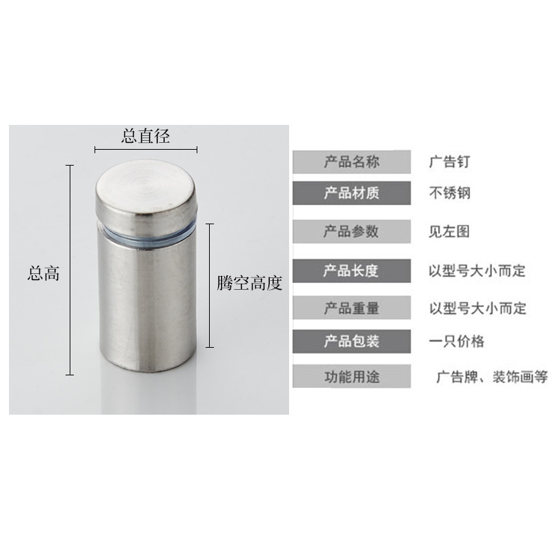 Acrylic advertising nails Stainless steel advertising screws Billboard decorative nails Extension rod teething nails Glass nails