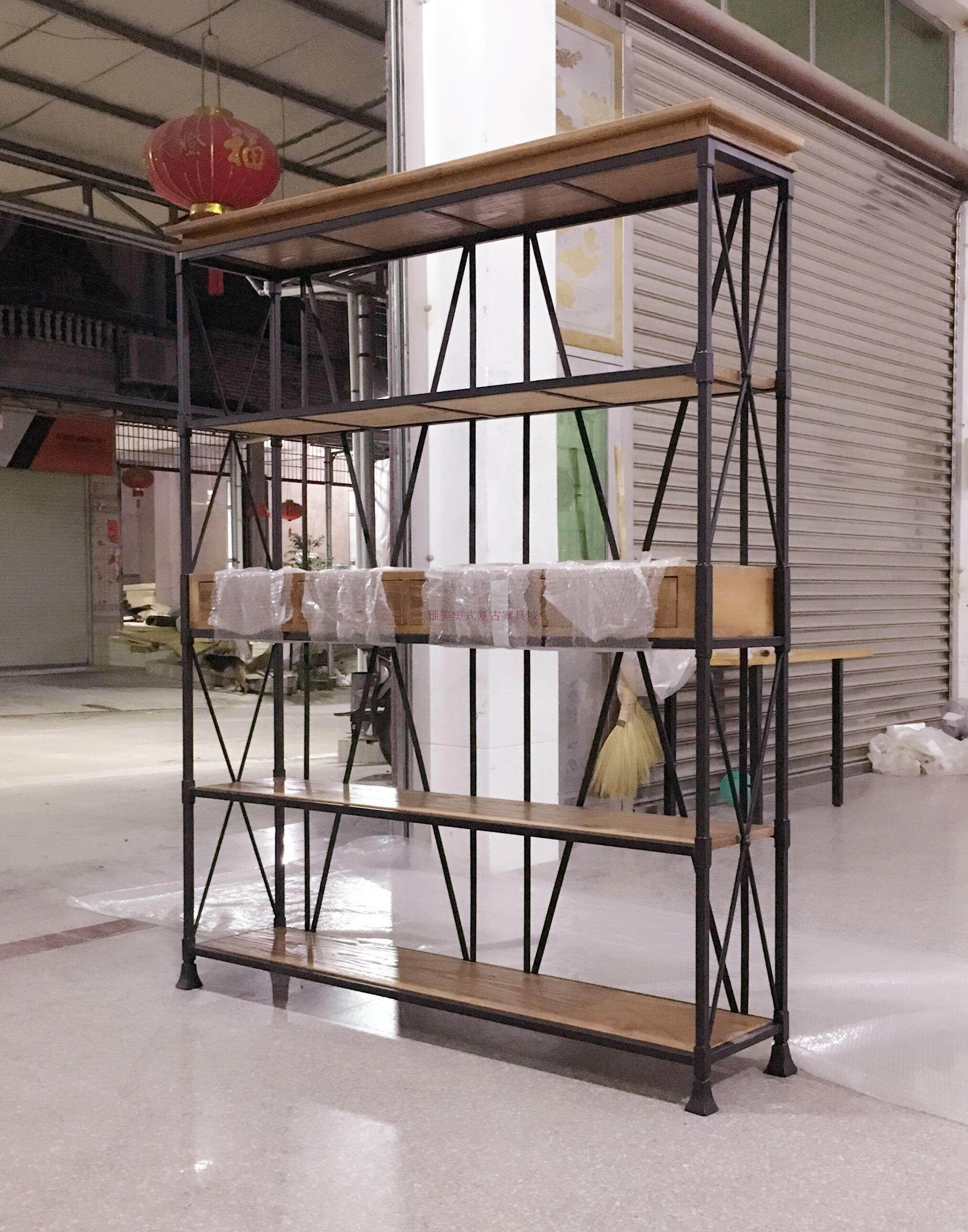 American country retro bookcase bookshelf wrought iron bookshelf rack rack solid wood simple storage shelf floor"