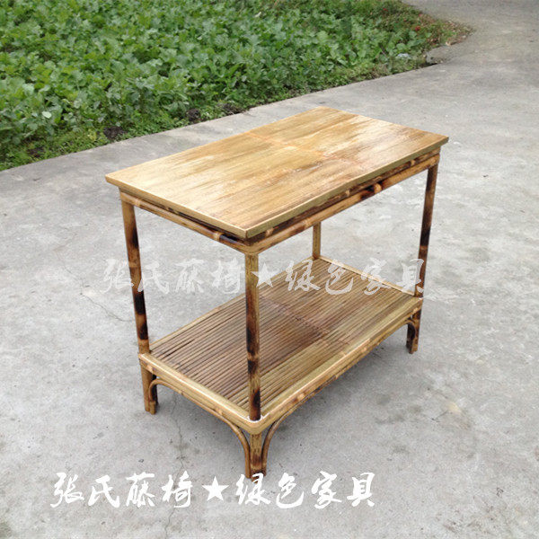 Zhang's rattan chair bamboo furniture bamboo tea table dining table rectangular double layer tea table table bamboo desk set object tea table