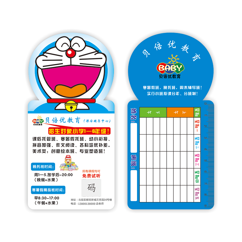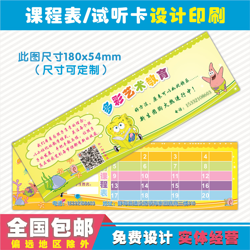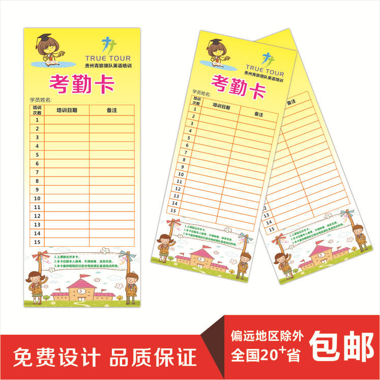 Class attendance card design Audition card making Class attendance record card printing Class schedule free experience card customization