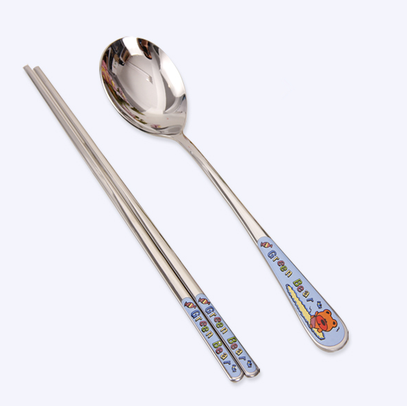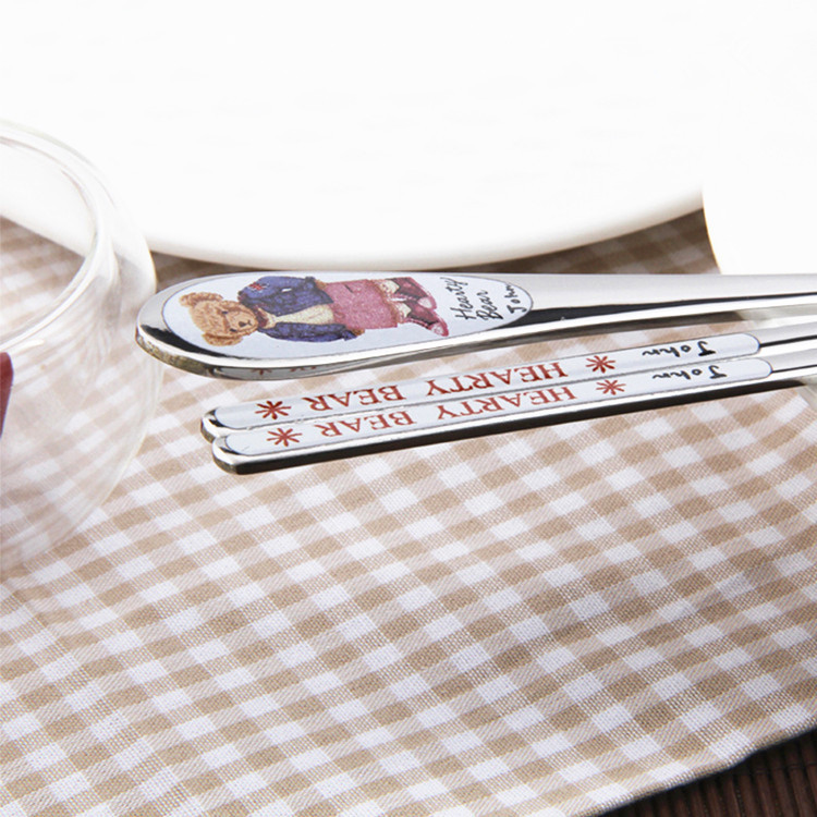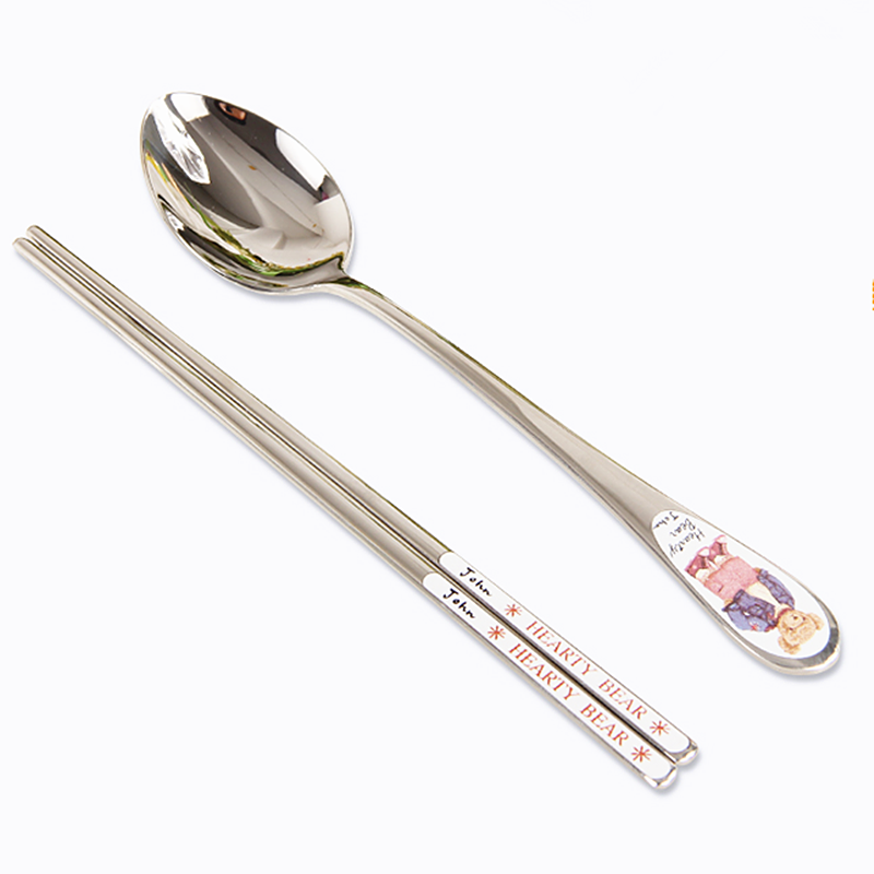 HEARTY small pointed spoon (90067) flat green pink round head spoon (90066) flat chopsticks green blue round head spoon (90066) flat chopsticks HEARTY teddy bear