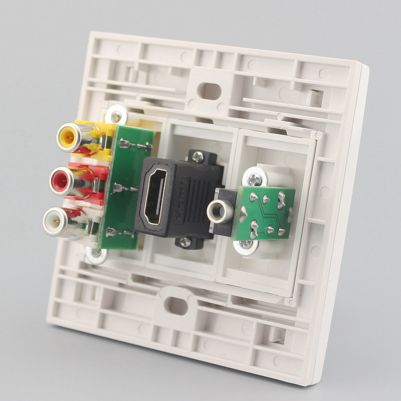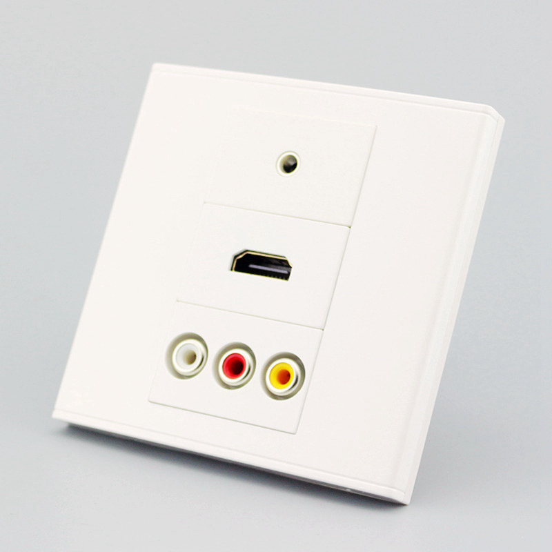 Type 86 three-hole RCA audio and video HDMI high-definition 3 5mm headphone butt straight insert panel computer audio socket
