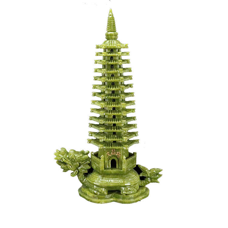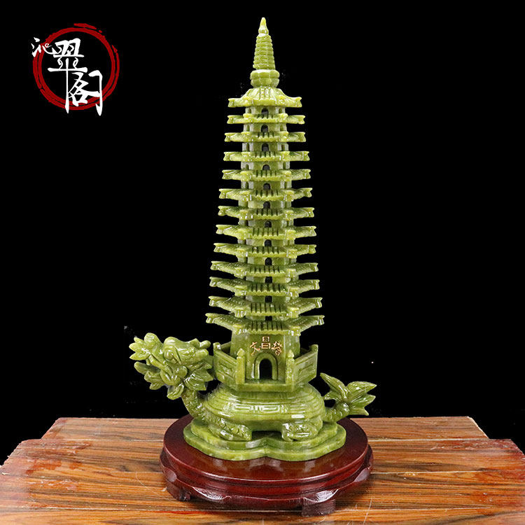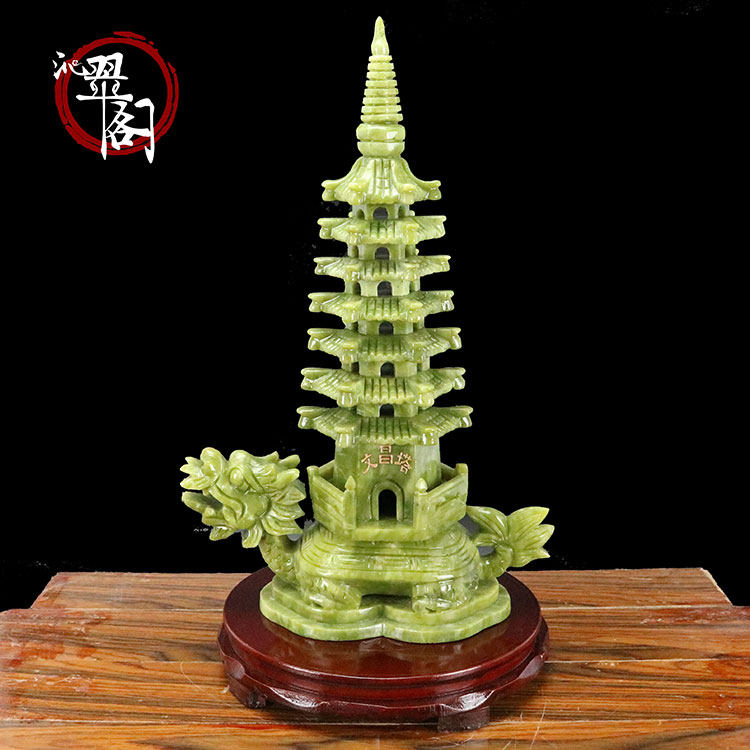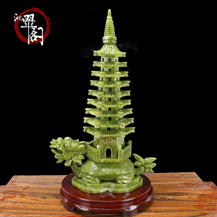 Natural jade dragon turtle Wenchang Tower ornaments help academic career Home fortune open up evil Feng Shui Living room office
