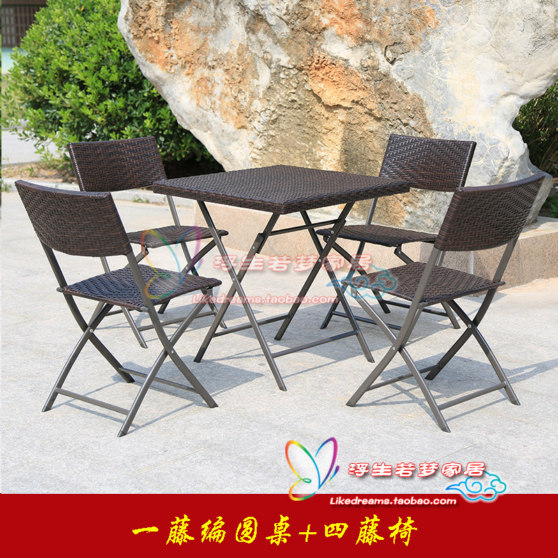 Outdoor fashion casual folding light table and chair set outdoor balcony tea shop barbecue rattan table and chair combination