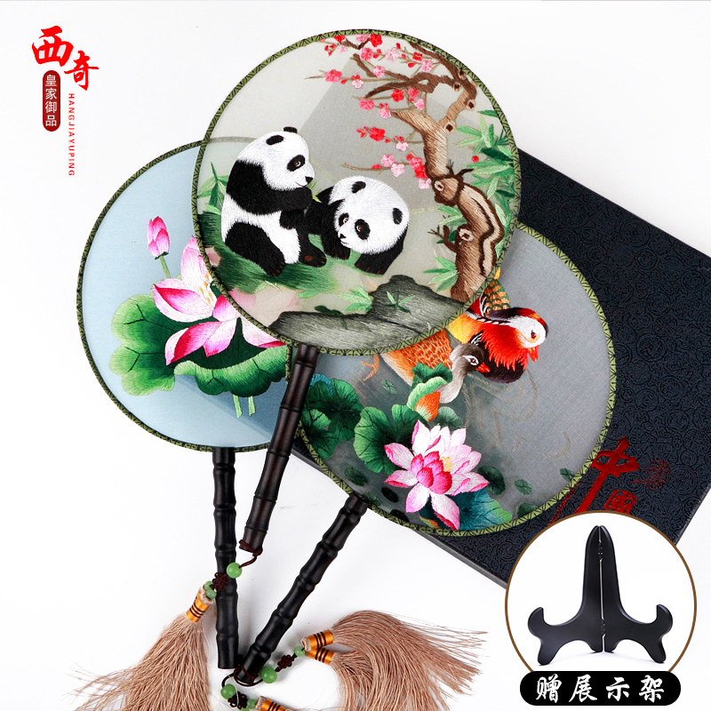 Su Embroidery Group Fan China Features Gifts of Old Foreign Gifts China Wind Gifts Shu Embroidered Handmade Embroidered Bifacial Embroidered Fan-Taobao