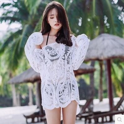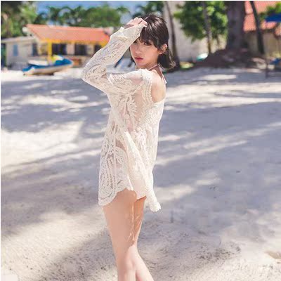 Seaside Korean version of Bohemia long-sleeved crochet casual bikini outer cover-up swimsuit beach outer wear 4216